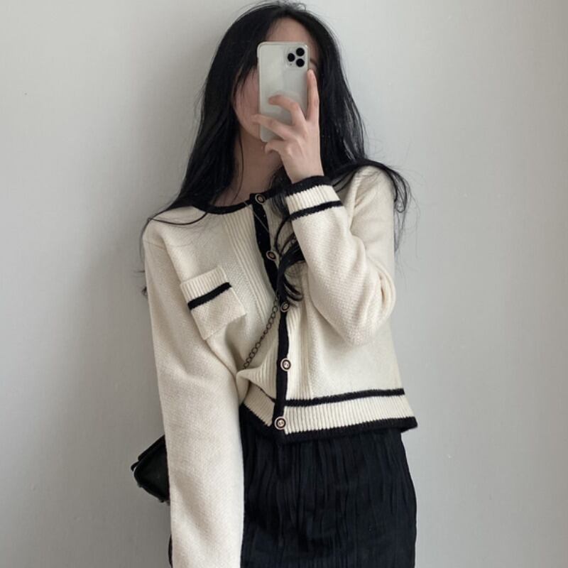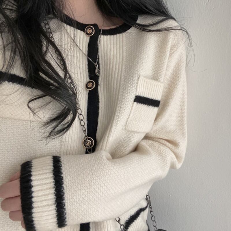 オータムスタイルスタンダードカラーラウンドネックルーズ薄手ニットセーター カーディガンレディース レトロ 秋物 Oネック 韓国婦人1842941216