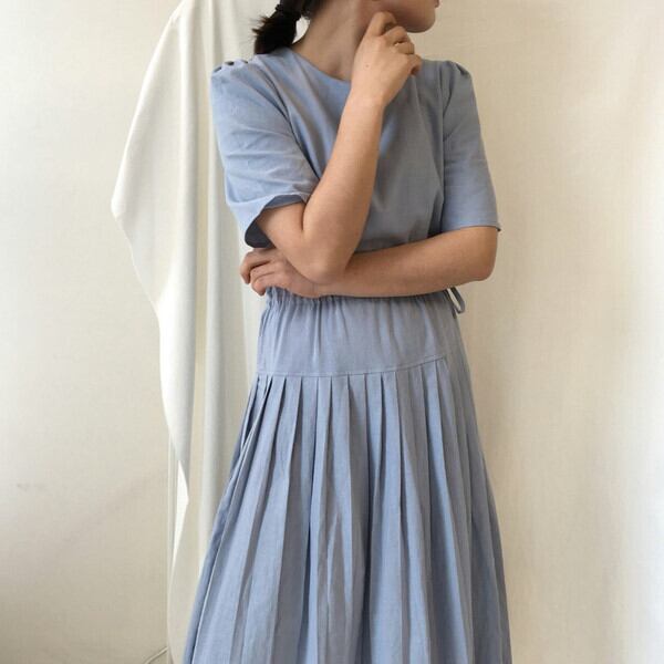 スタイルドレス サマーラウンドネックプリーツギャザールーズ薄手スカート ロング 夏物 Oネック 韓国婦人27655561739
