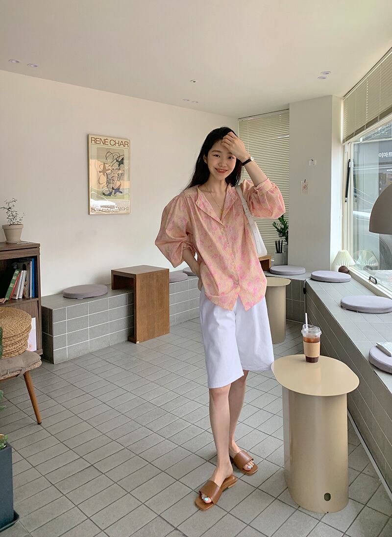 サマーラウンドネックルーズスリーブカラーシャツ レディース 大人ガーリー スウィート キュート カジュアル 夏物 Oネック 韓国婦人97628355496