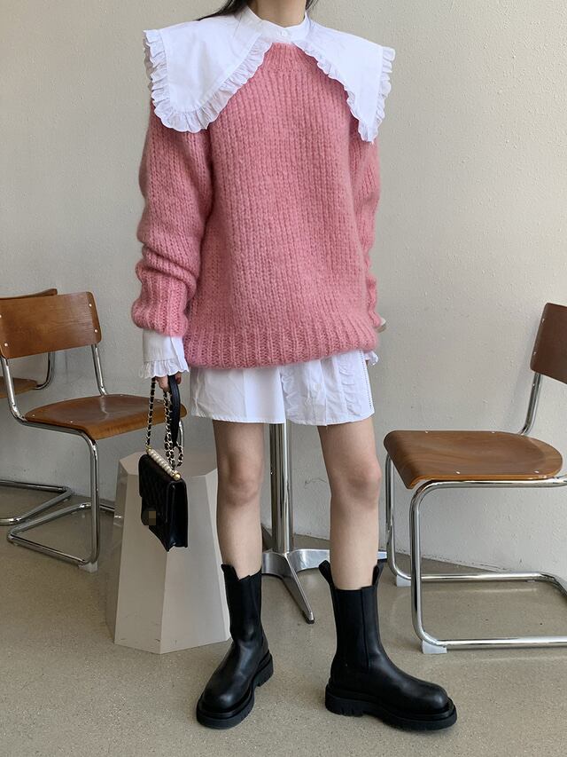 オータムウィンターレースシャツ ドレス スタイルルーズセーター 秋物 冬物 韓国婦人57938664629