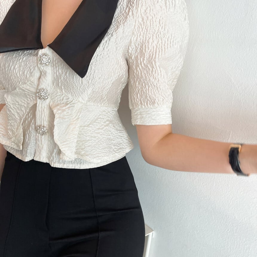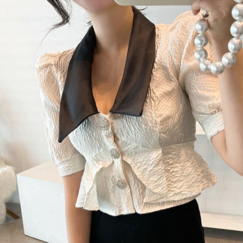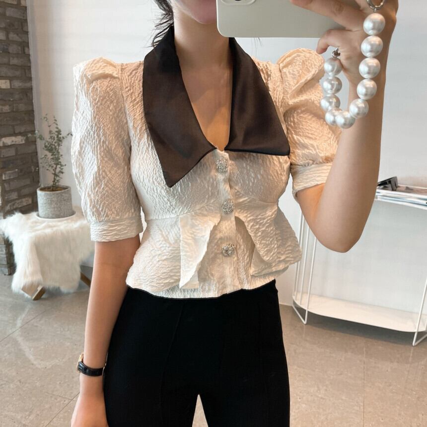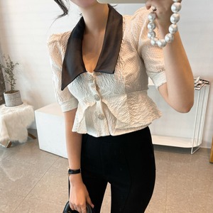 スタンダードカラージャカードシャツ サマーウェストショートトップス レトロ 夏物 韓国婦人27678627703