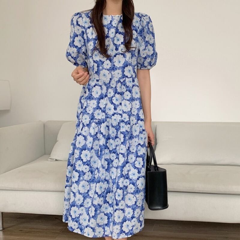 ウェストスリーブサマーロングスカート 大人ガーリー スウィート キュート カジュアル 夏物 フラワーデザイン 韓国婦人38943011808