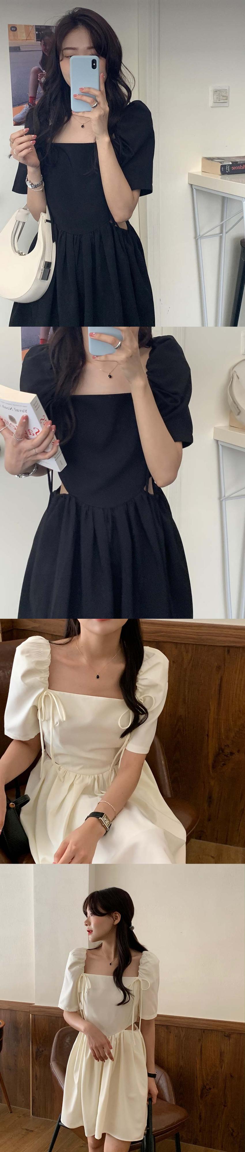 サマースタンダードウェストスリーブドレス レトロ 夏物 スクウェア 韓国婦人34306579699