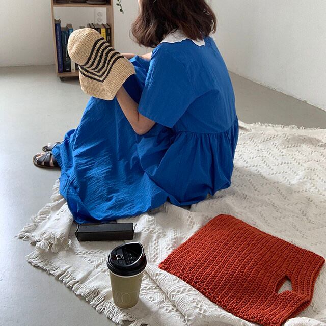 サマーカラーウェストソリッド ドレス ルーズスカート 夏物 ソリッドカラー 韓国婦人3089042351