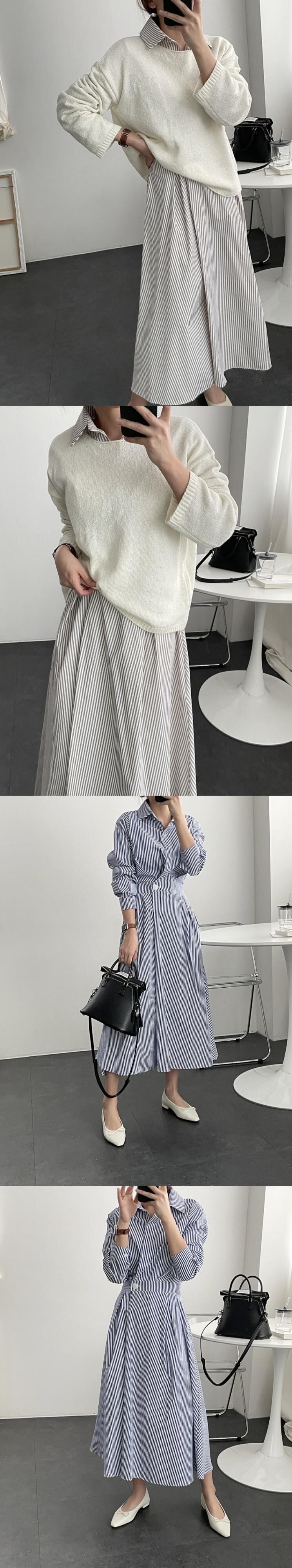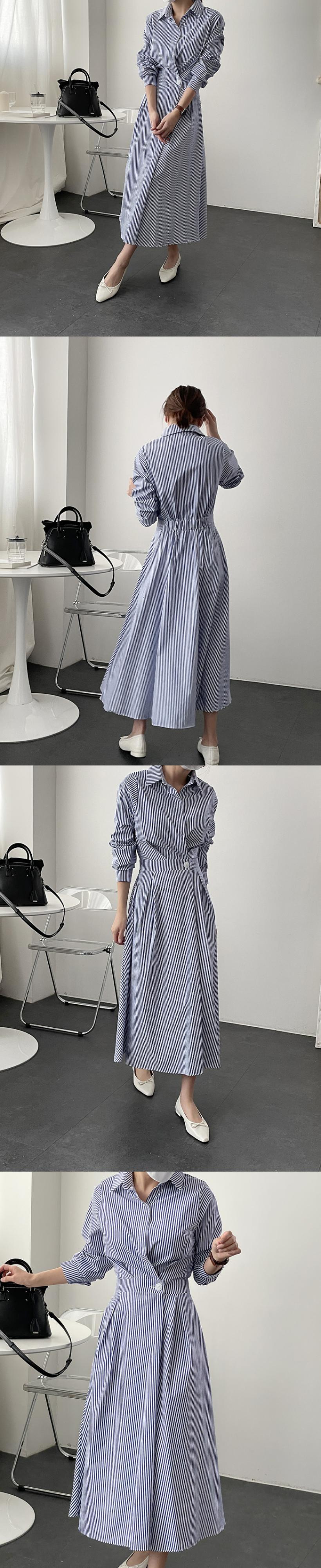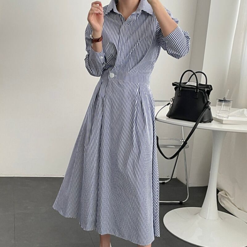 オータムスタイルボタンウェストロングストライプシャツ ドレス レディース 秋物 韓国婦人63420513955