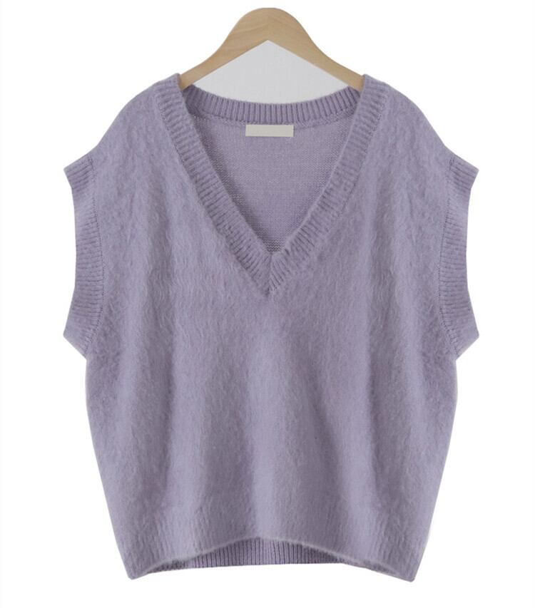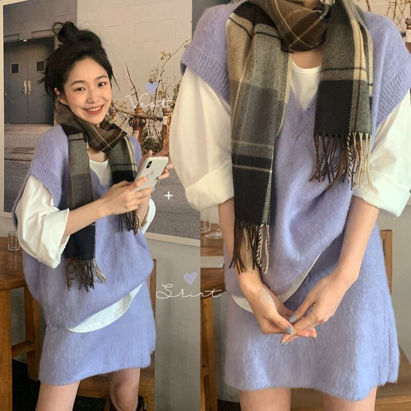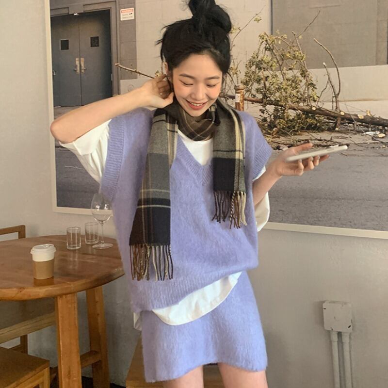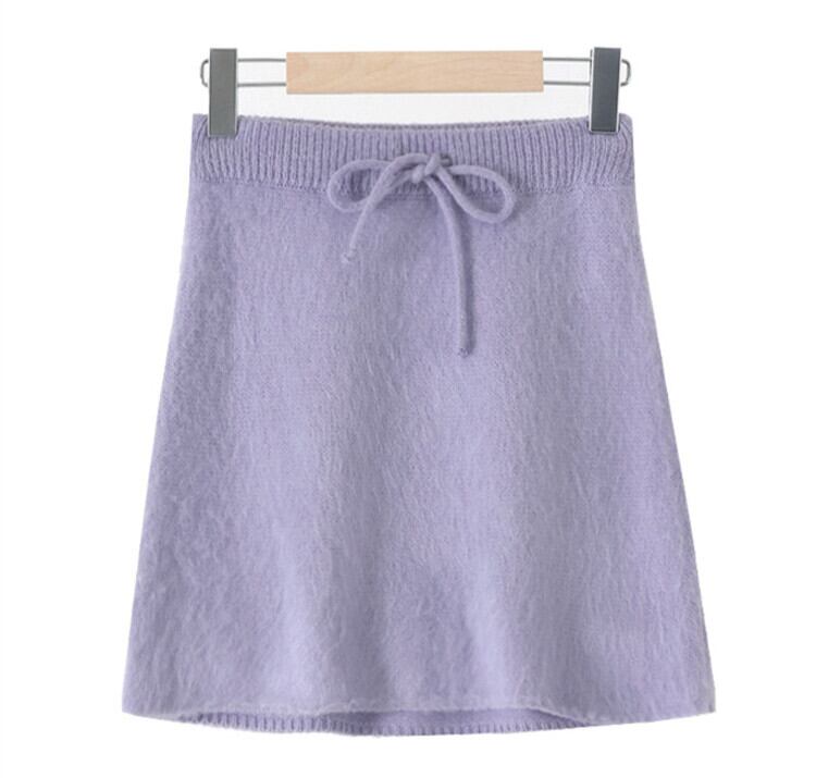 スタイルVネックウェストハイウェストショートスカート ニットレディース パープル 韓国婦人48699289593