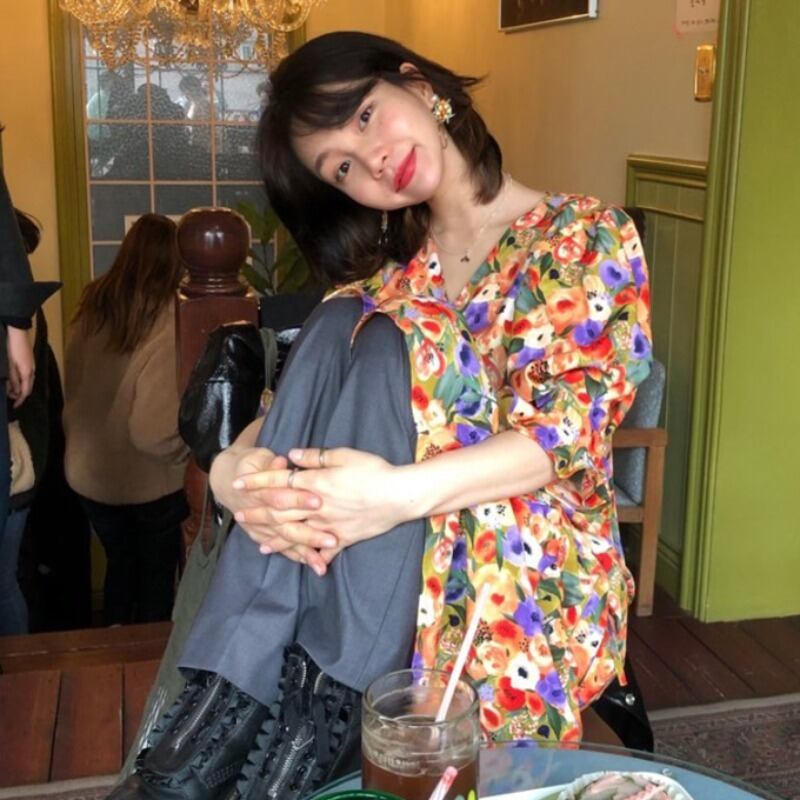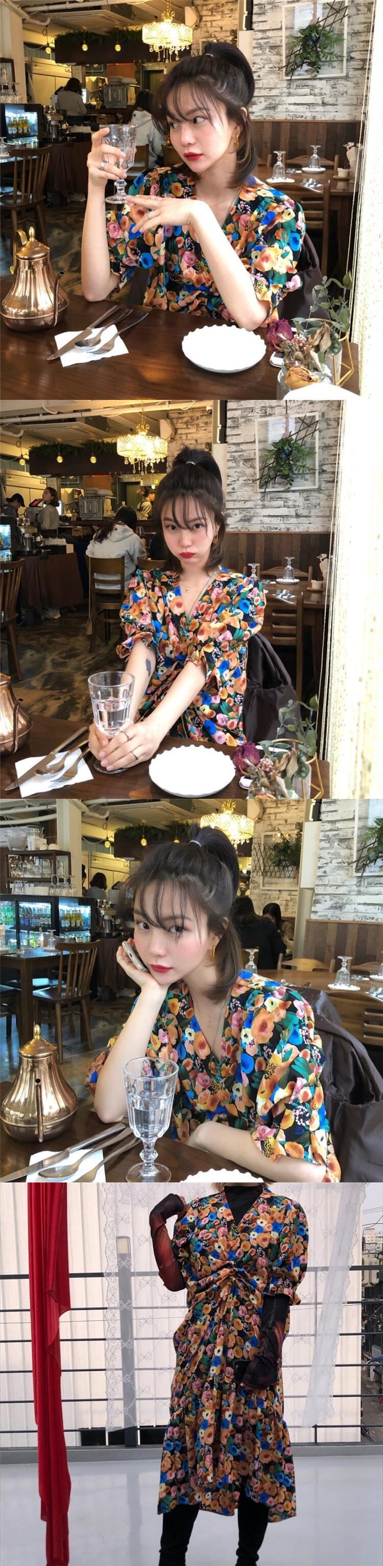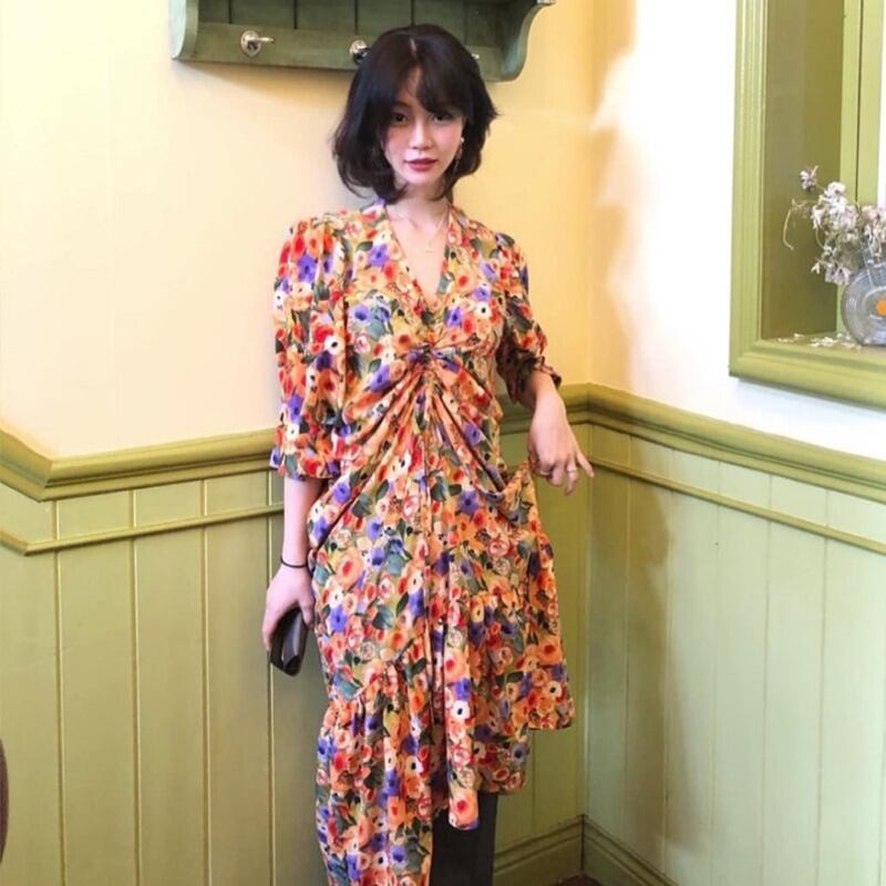 スタンダードVネックロングシフォンドレス レディース レトロ フラワーデザイン 韓国婦人6623940680