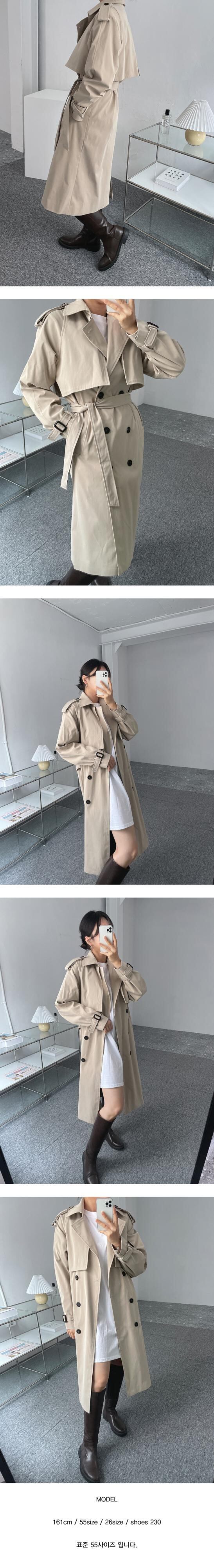 オータムウィンタースタンダードダブルブレストストラップ ウェスト薄手ロングジャケット レディース レトロ 秋物 冬物 韓国婦人23305784198
