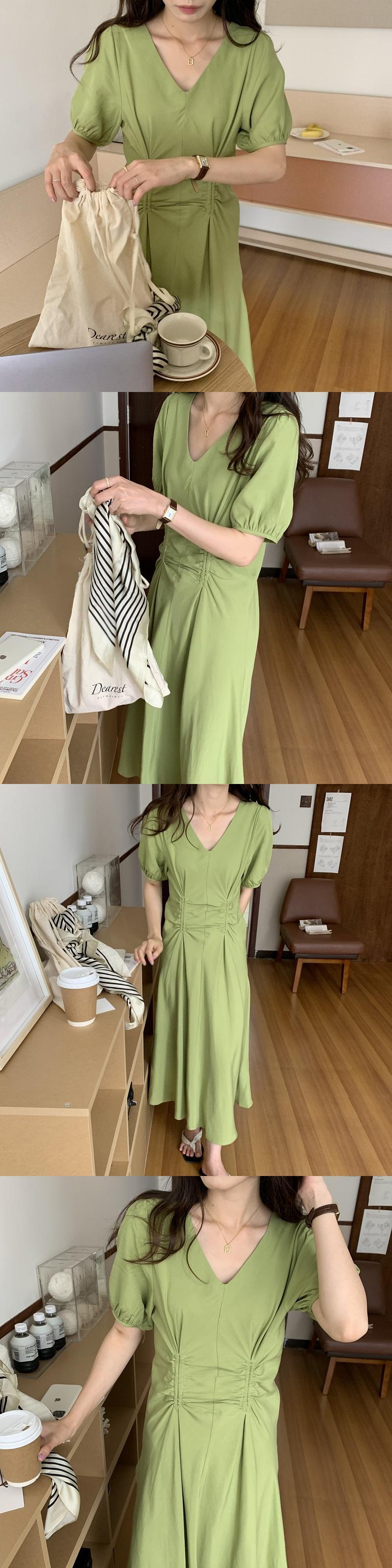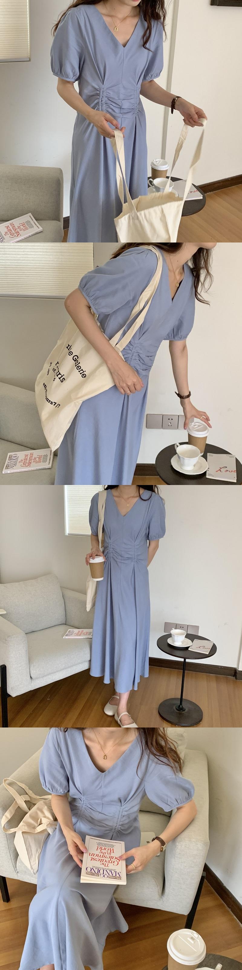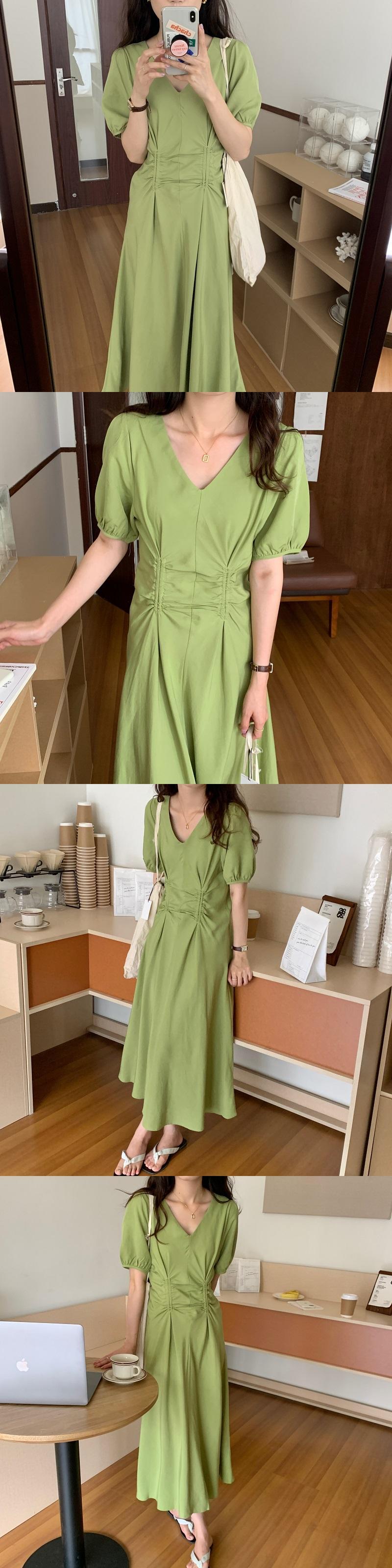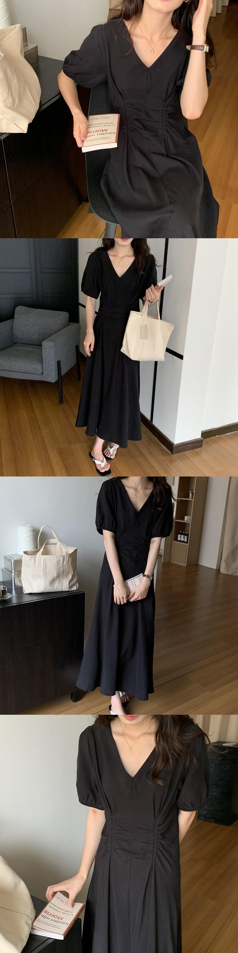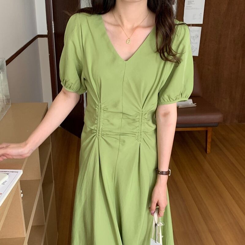 スタンダードVネックウェストドレス サマー レトロ 夏物 韓国婦人76979971448
