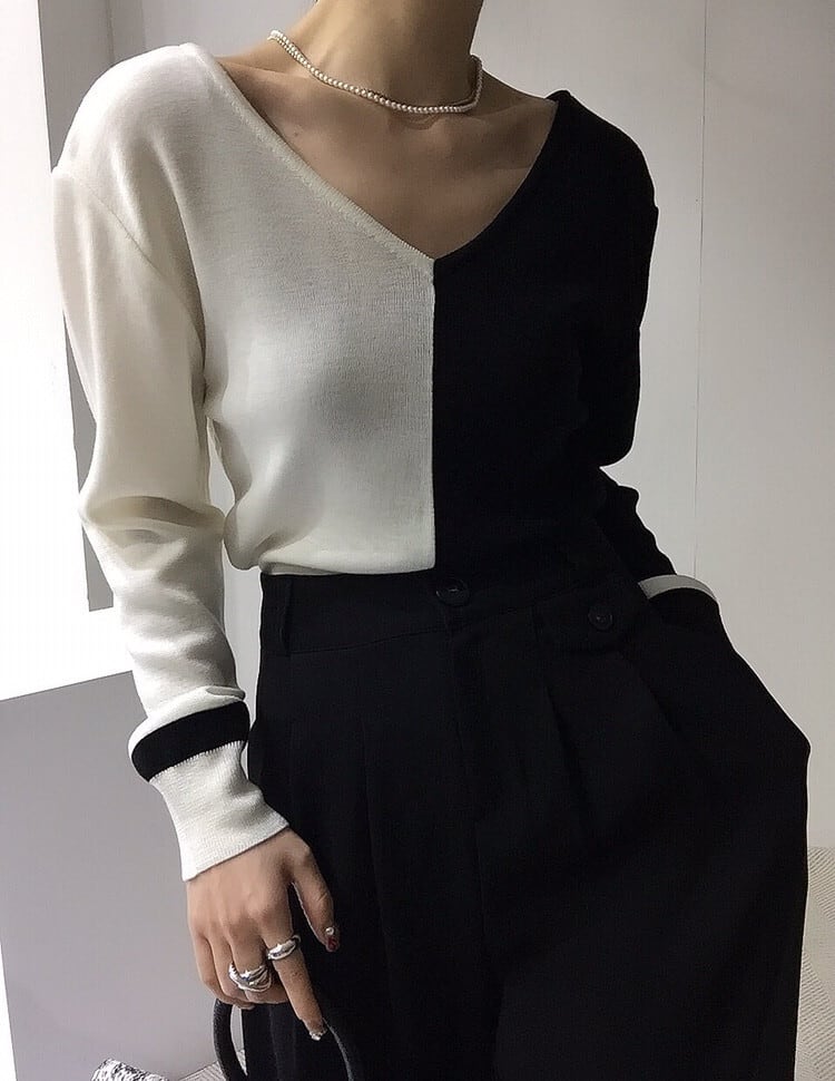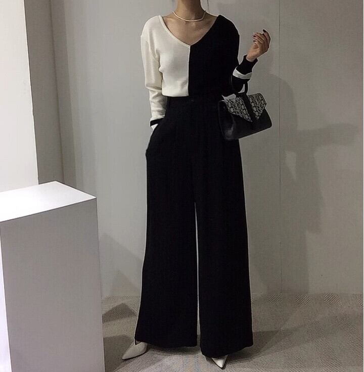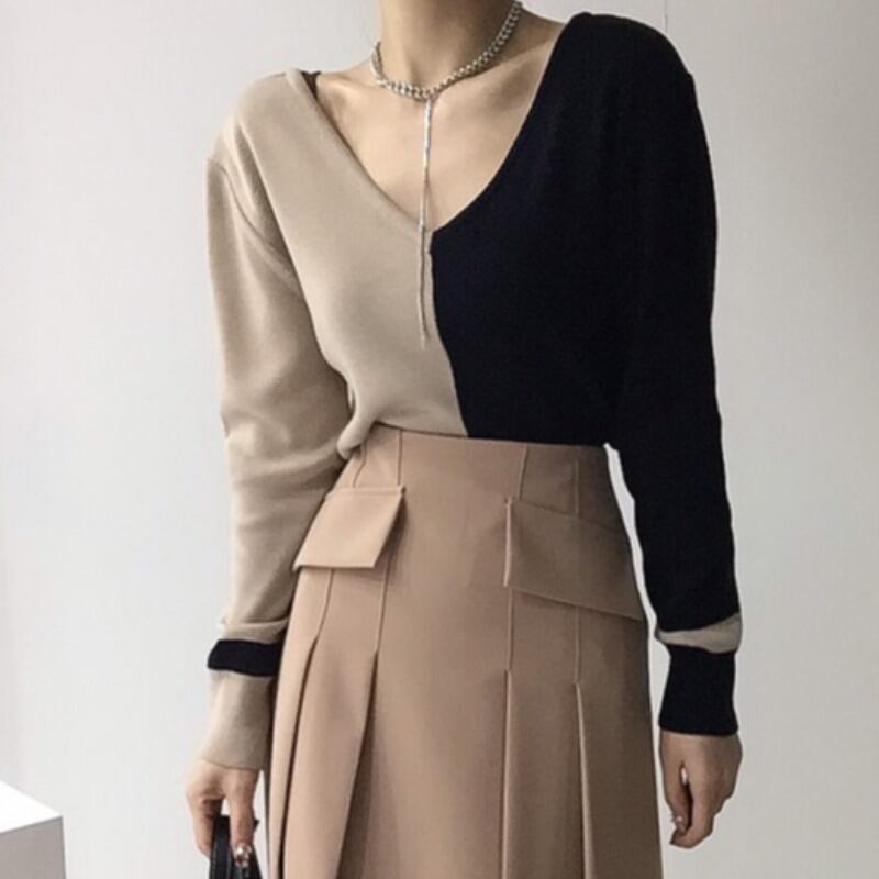 オータムウィンタールーズカラーVネックセーター トップス レディース ロング 秋物 冬物 韓国婦人31482619851
