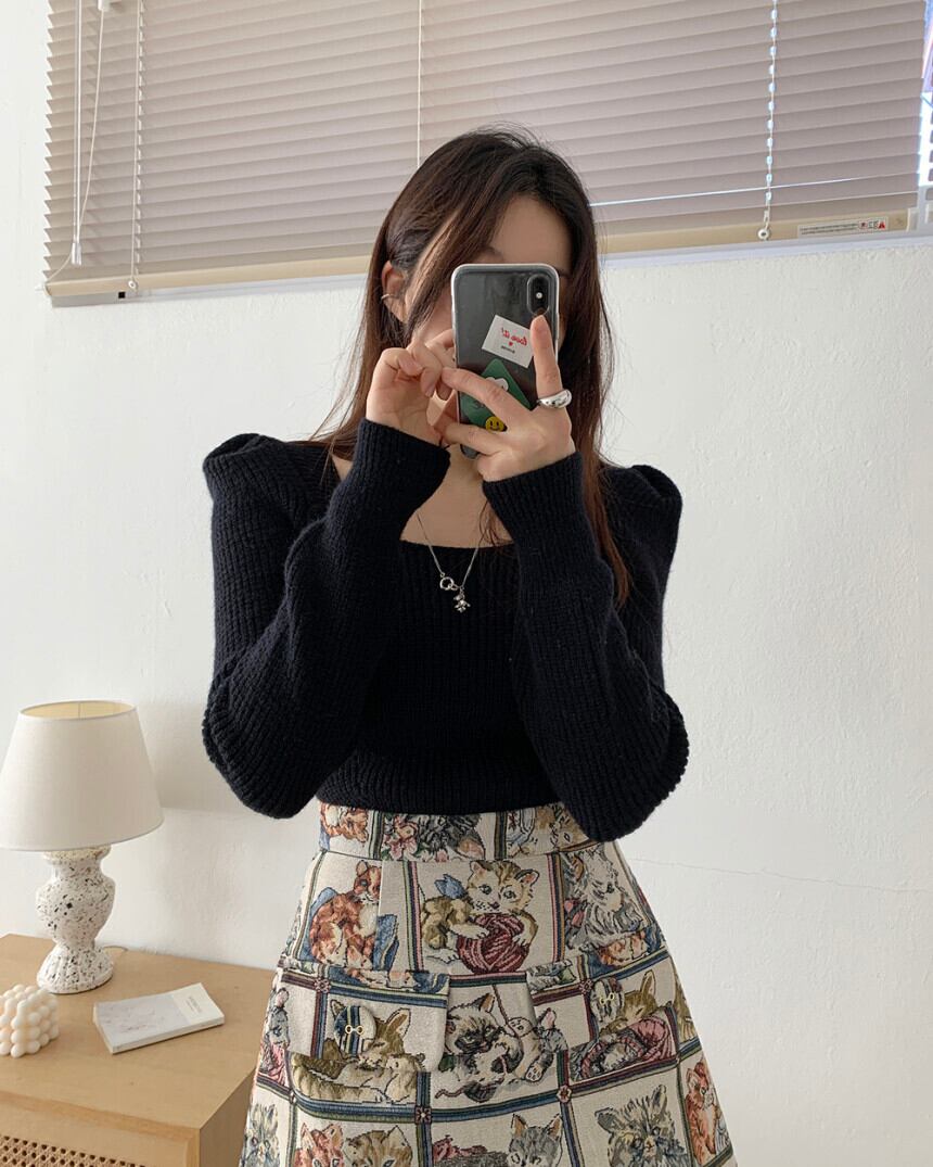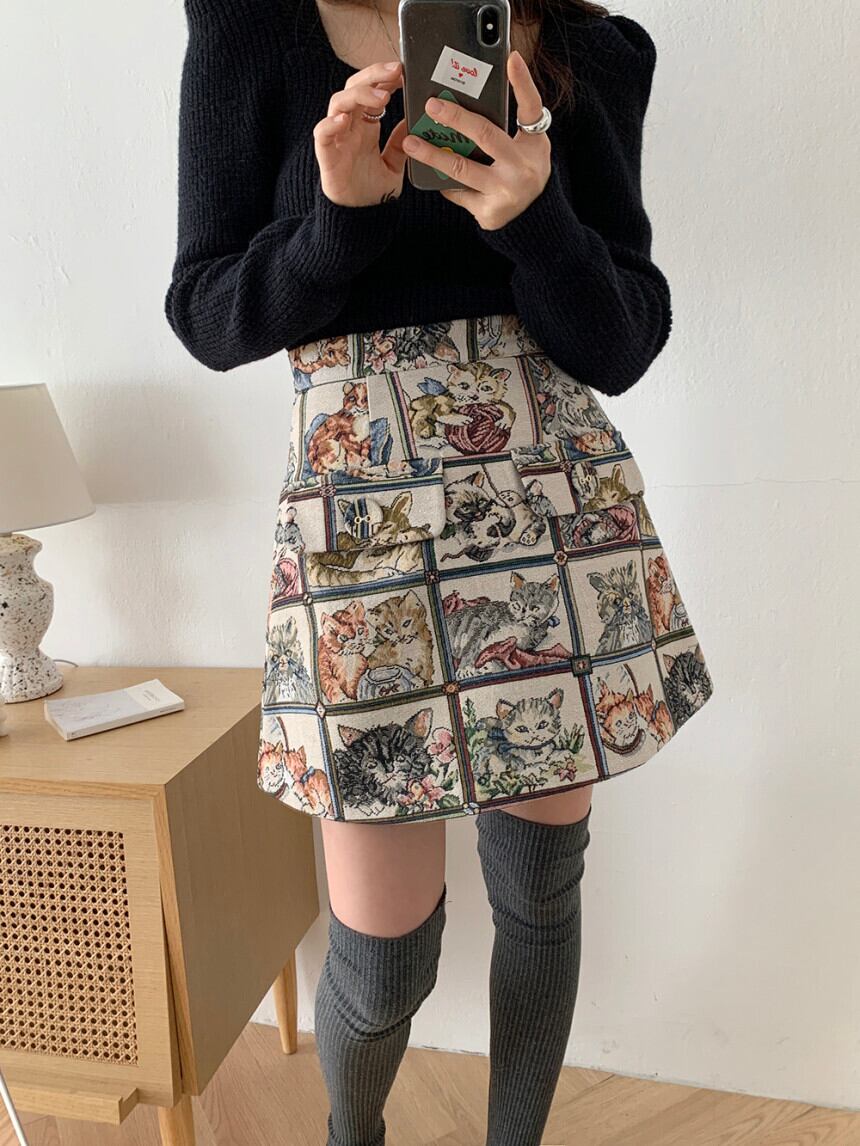 オータムウィンタースリーブセーター スタンダードプリント柄スカート レトロ 秋物 冬物 スクウェア 韓国婦人49291339580