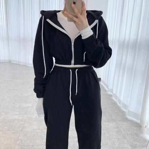 スプリングオータムスタンダードルーズフードセーター スタイルカジュアルパンツ レディース レトロ 春物 秋物 韓国婦人33783138793