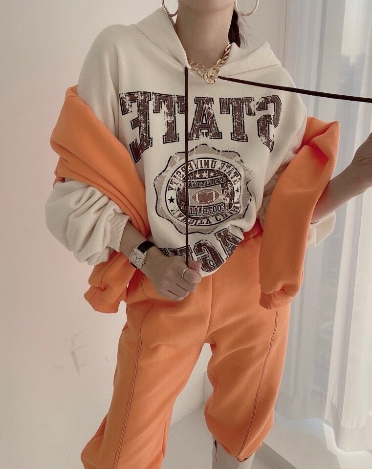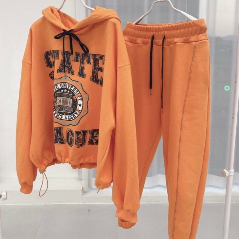 オータムスタンダードプリント柄ルーズフードセーター カジュアルパンツ レディース レトロ 秋物 韓国婦人71391162251