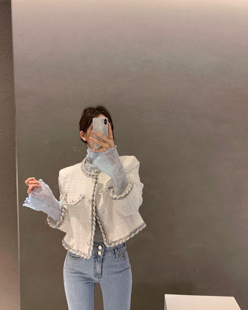オータムウィンターショートツィードジャケット レディース 秋物 冬物 韓国婦人65719759587