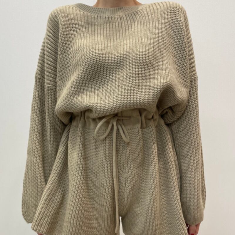 オータムウィンタースタンダードバックギャザーニットセーター ワイドレッグジャンプスーツ オールインワン ショーツ レディース レトロ 秋物 冬物 ブルマー ワイドパンツ 韓国婦人60309701214