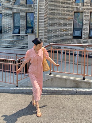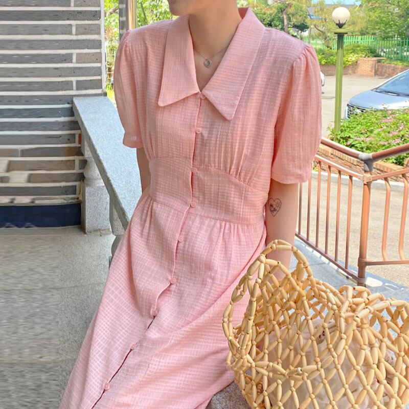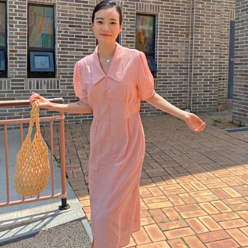 スリーブドレス ロングスカート サマー 夏物 韓国婦人30135975032