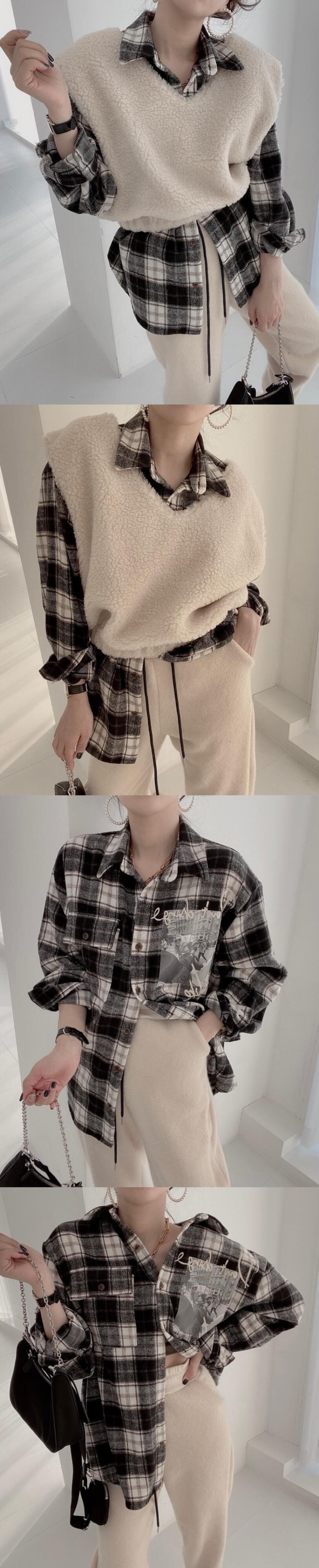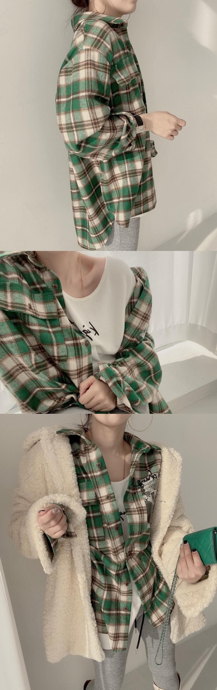 オータムウィンタースタンダードスタイルカジュアル格子柄シャツ Vネック レトロ 秋物 冬物 韓国婦人52202188972