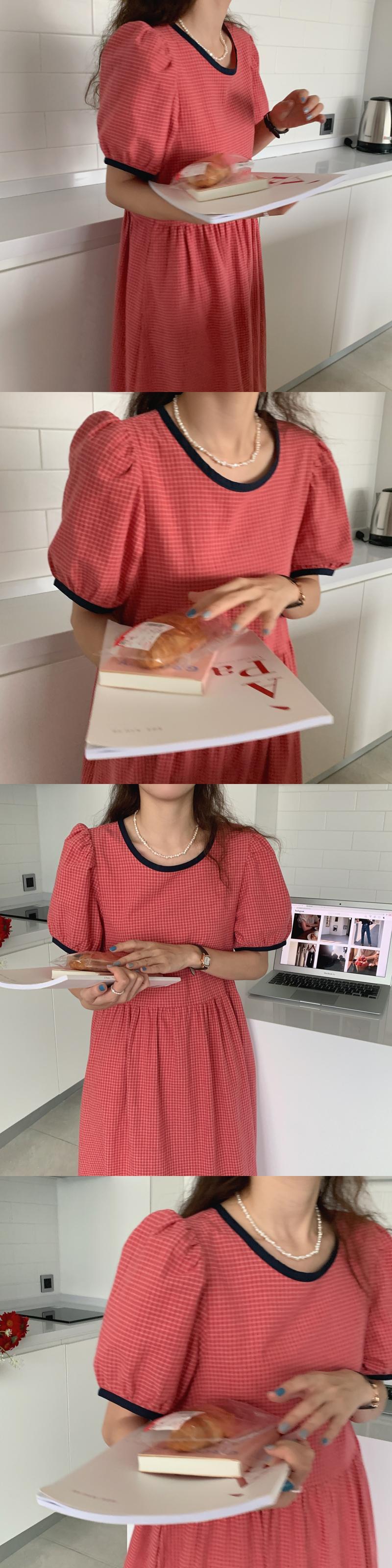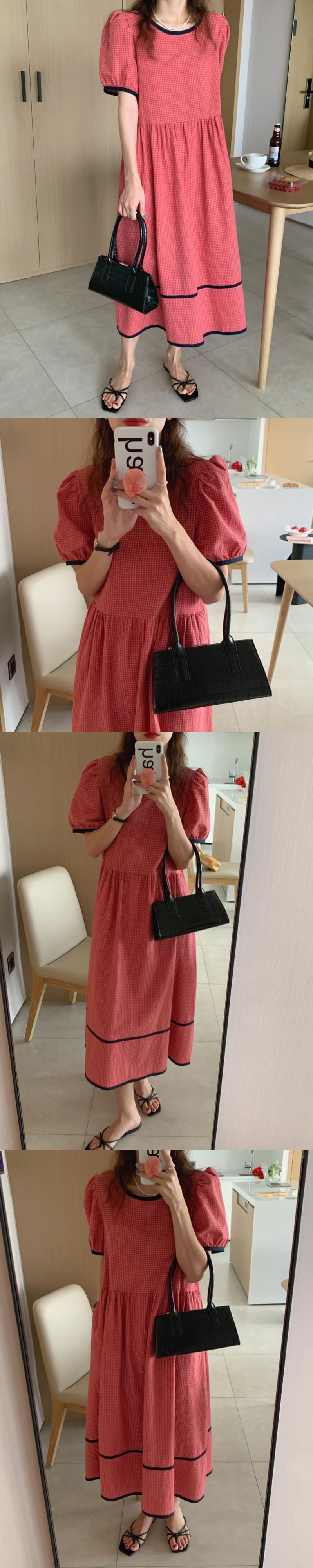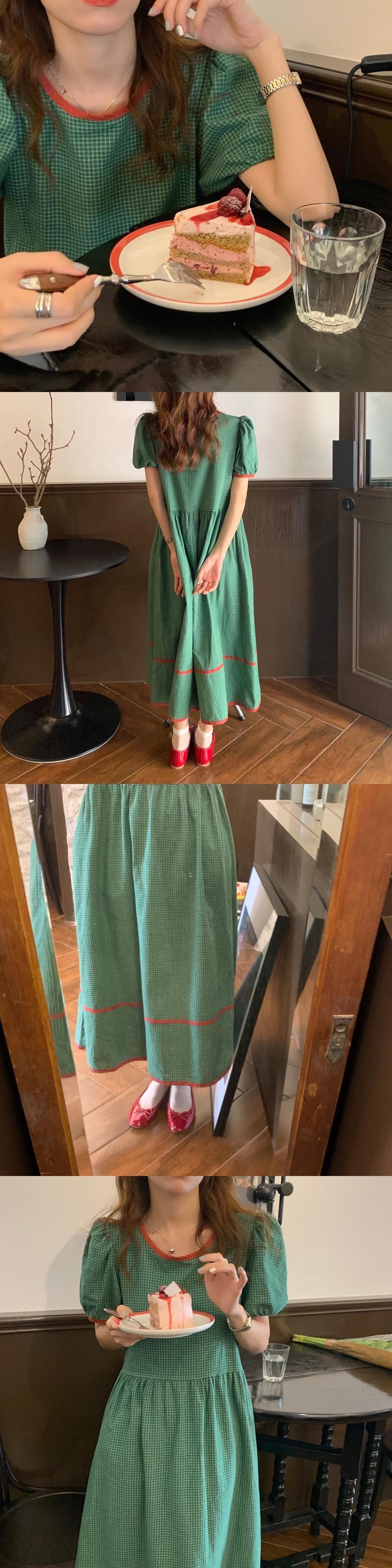 スタイルカラーサイドスタンダードルーズラウンドネックスリーブ格子柄ドレス サマーロングスカート レトロ 大人ガーリー スウィート キュート カジュアル 夏物 Oネック 韓国婦人42613982409