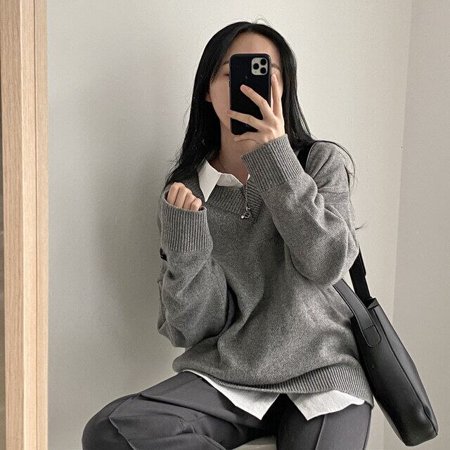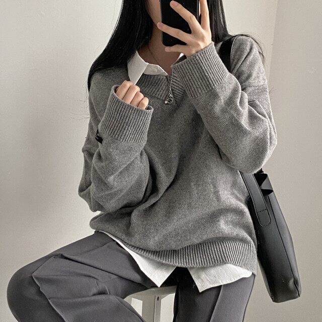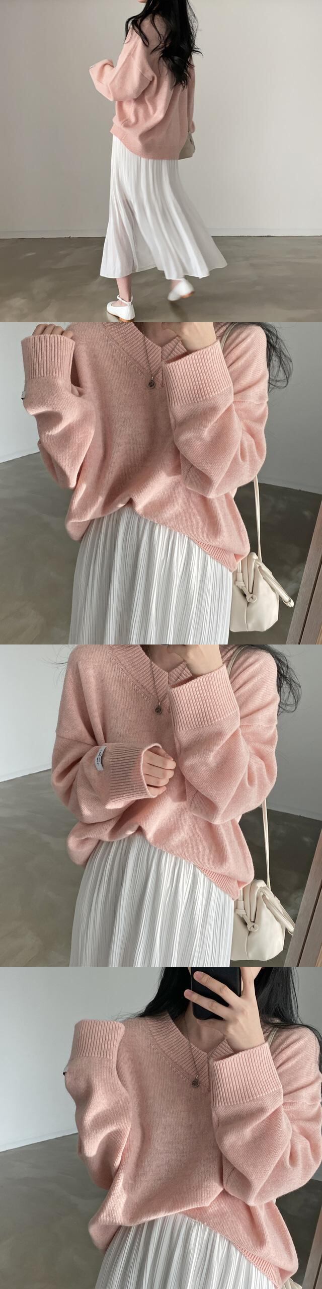 オータムウィンタールーズVネックプルオーバー セーター レディースカジュアル ピンク 秋物 冬物 韓国婦人10855224144