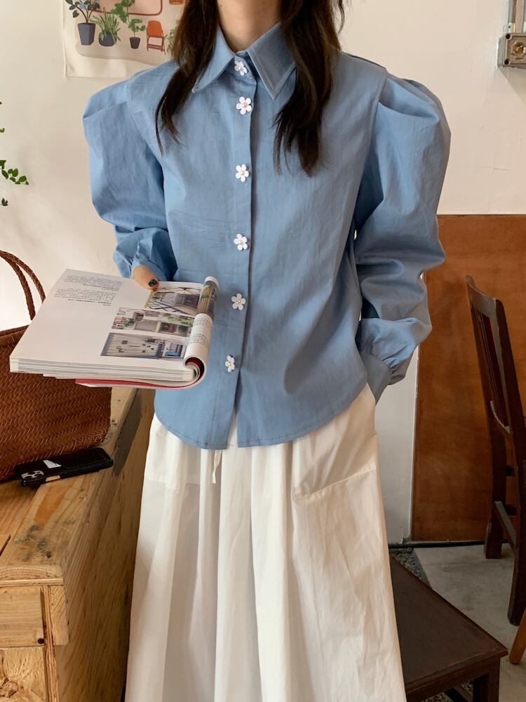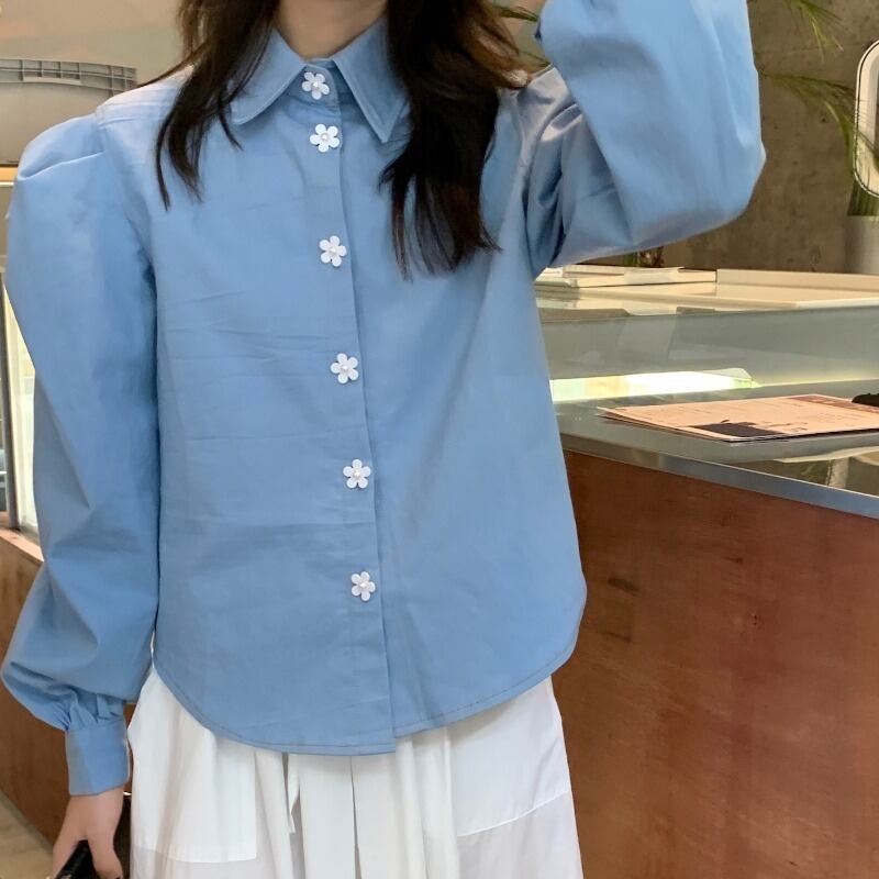 オータムスタンダードスタイルFlowerデザイン ボタンスリーブシャツ レトロ 大人ガーリー スウィート キュート カジュアル 秋物 フラワーデザイン 韓国婦人16203030267