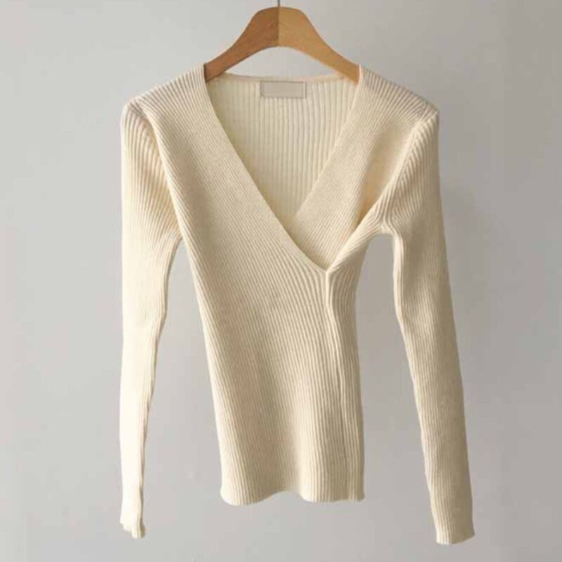 オータムウィンタークロスVネックスリムウェストセーター レディース ロング エレガント 秋物 冬物 韓国婦人41490873095