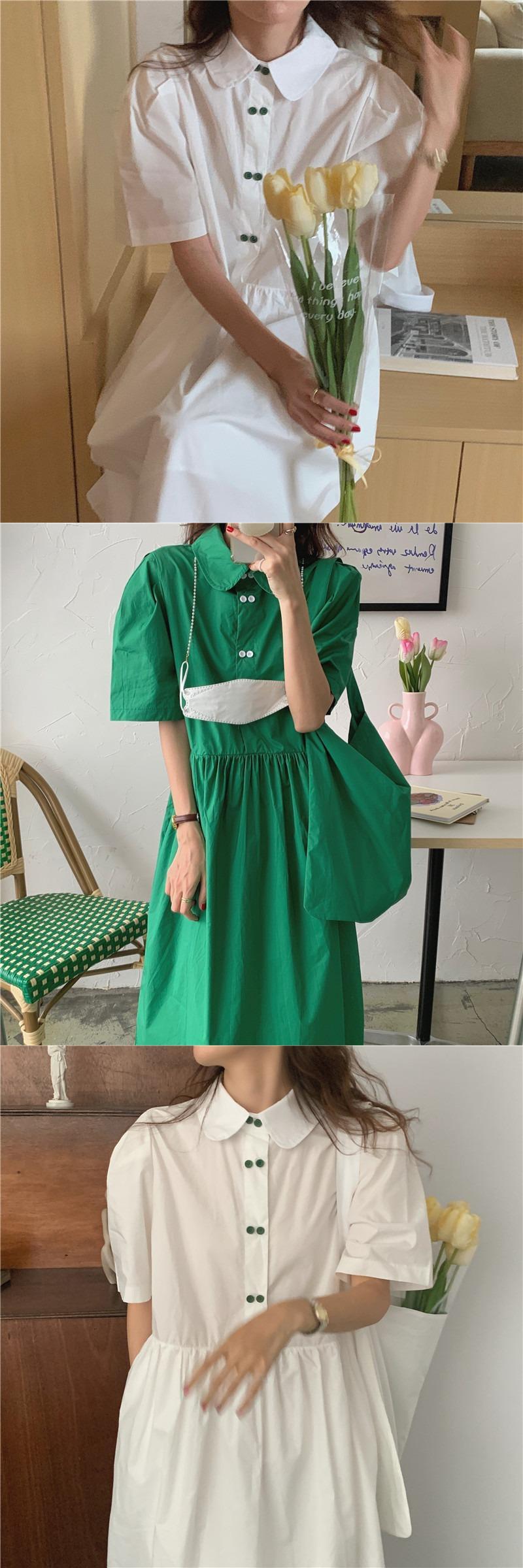 サマースタンダードカラーダブルブレストシャツ ドレス レトロ 夏物 韓国婦人88858498203