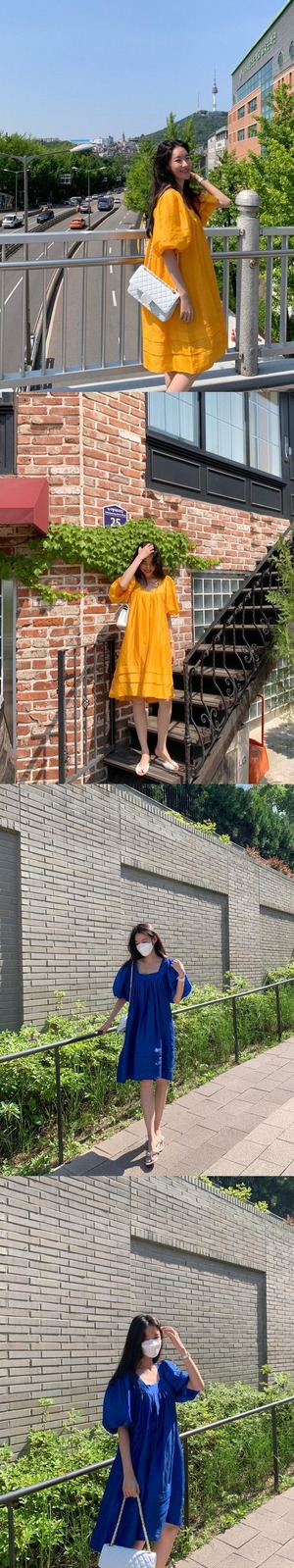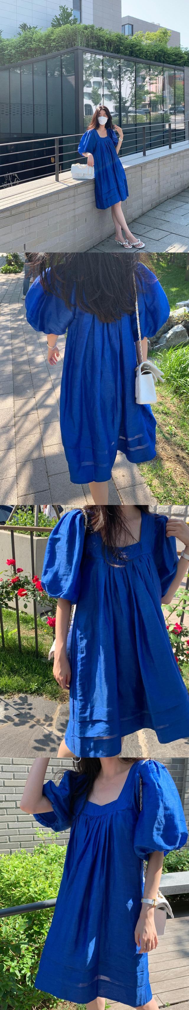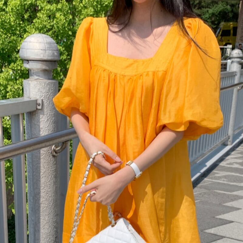 サマースタンダードカラールーズ薄手スリーブドレス レトロ 夏物 スクウェア 韓国婦人5420376859