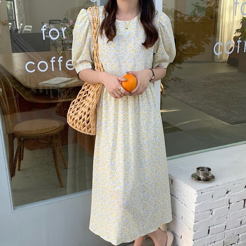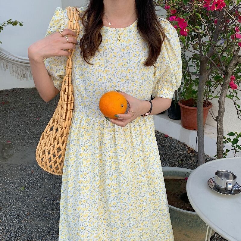 サマーフローラルホワイトシフォンドレス 大人ガーリー スウィート キュート カジュアル 夏物 花柄 韓国婦人4884952208