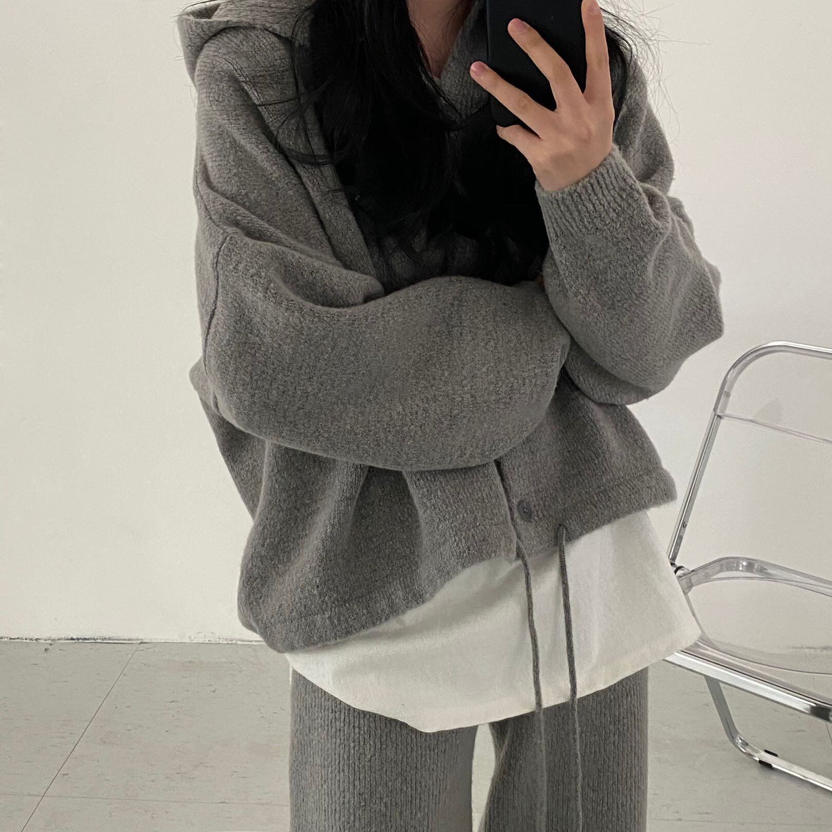 オータムウィンターフードカーディガンジャケット カジュアルニットレディース 秋物 冬物 韓国婦人82668942038
