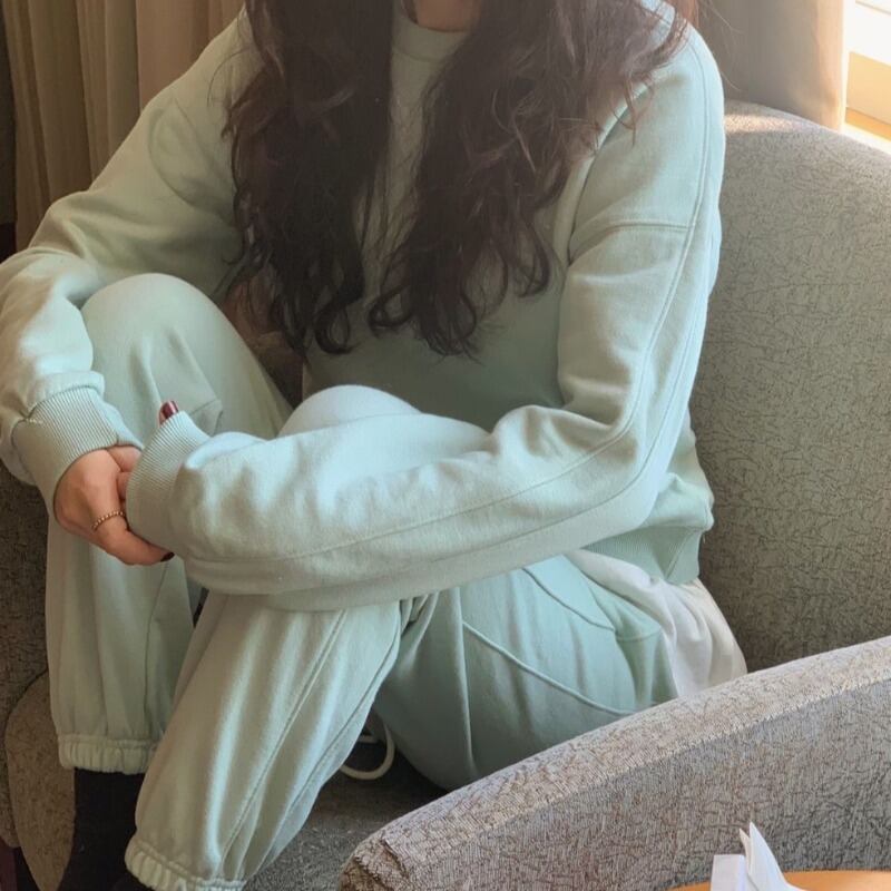色:ライトグリーンのセーター,ライトグリーンパンツ,ライトグリーンのセーターとベルベット,ライトグリーンのパンツとカシミア