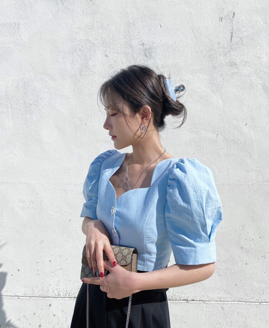 スタイルボタンブラウス バックレーススリーブシャツ サマー 夏物 スクウェア 韓国婦人33668041975
