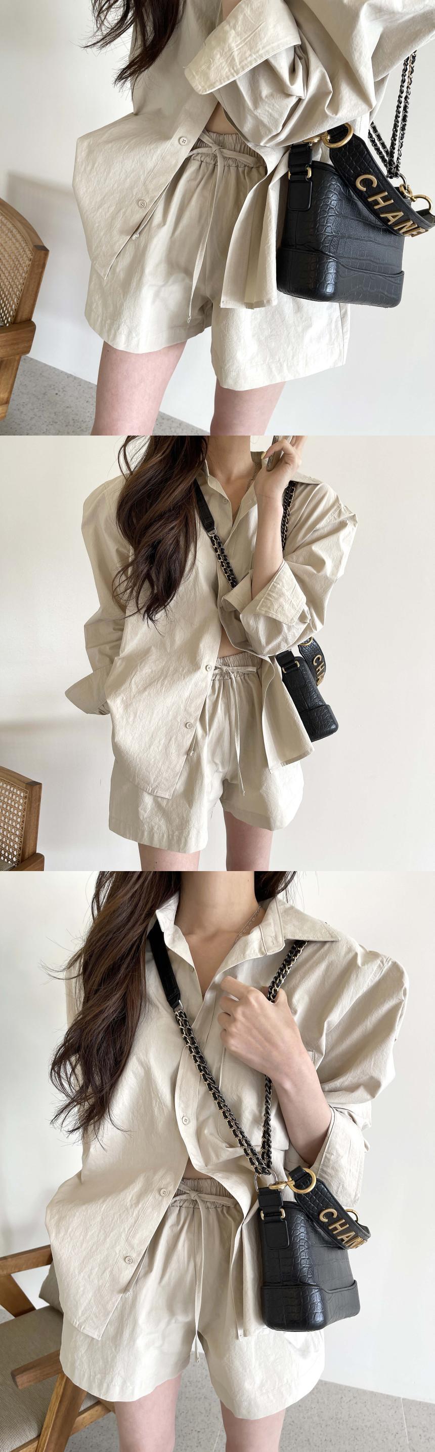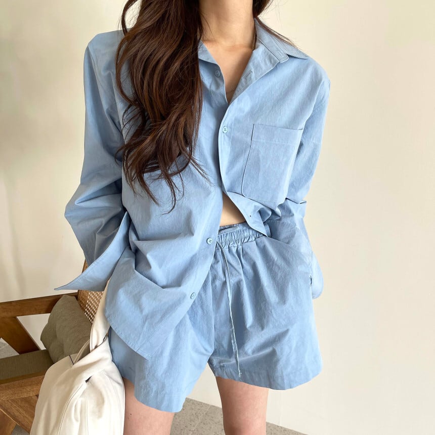 オータムスタンダードルーズシャツ ストレッチウェストカジュアルショーツ ブルーレディース ロング レトロ エラスティック 伸縮 秋物 ブルマー 韓国婦人13924874513