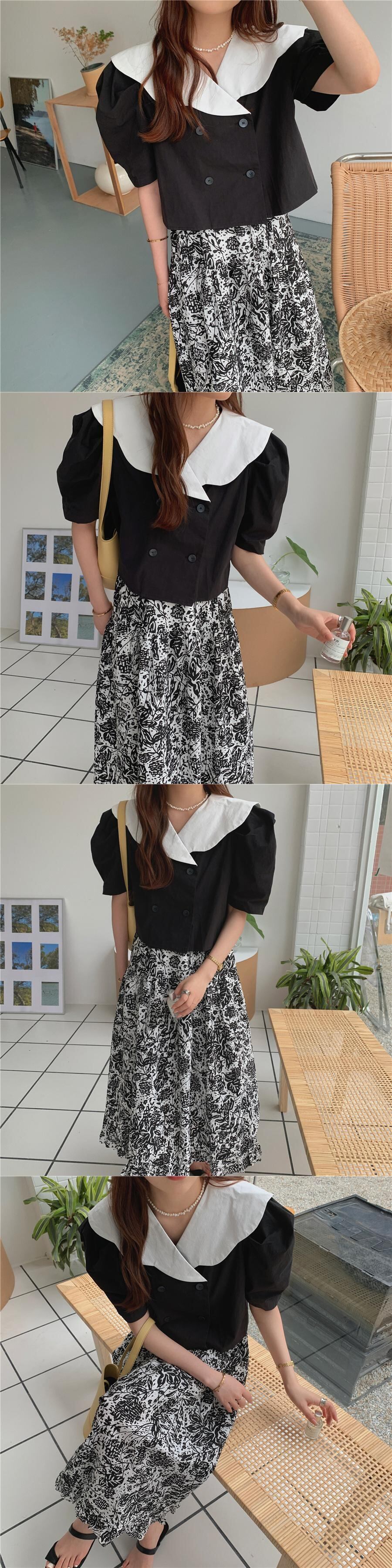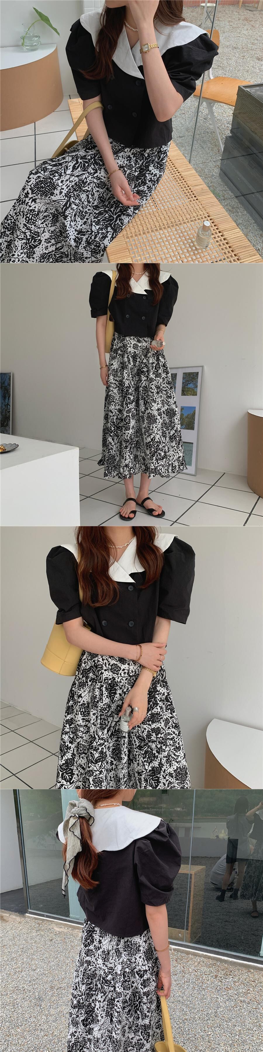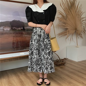 サマーレディーススタンダードスリーブショートシャツ ストレッチウェストフローラルスカート レトロ エラスティック 伸縮 夏物 花柄 韓国婦人59434116328