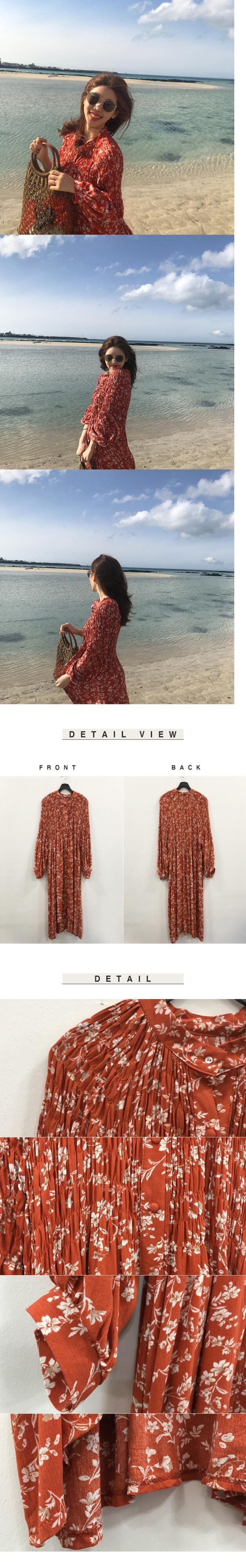 スプリングスタイルプリーツスタンダードフローラルシフォンドレス レトロ エレガント 春物 花柄 韓国婦人30004681032