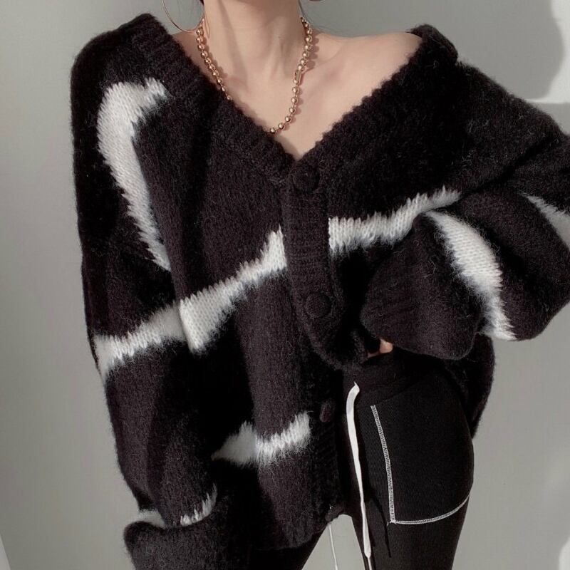 オータムウィンターVネックカラールーズニットカーディガンセーター レディース 秋物 冬物 韓国婦人53123643202