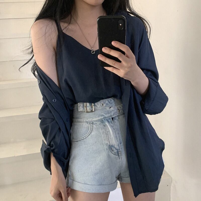 スタンダードカジュアルシャツ ブラウス ロング レトロ 韓国婦人63565017725