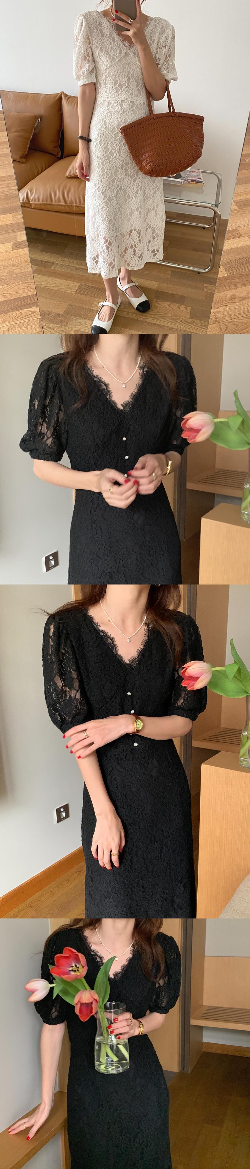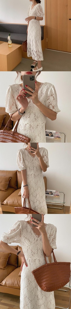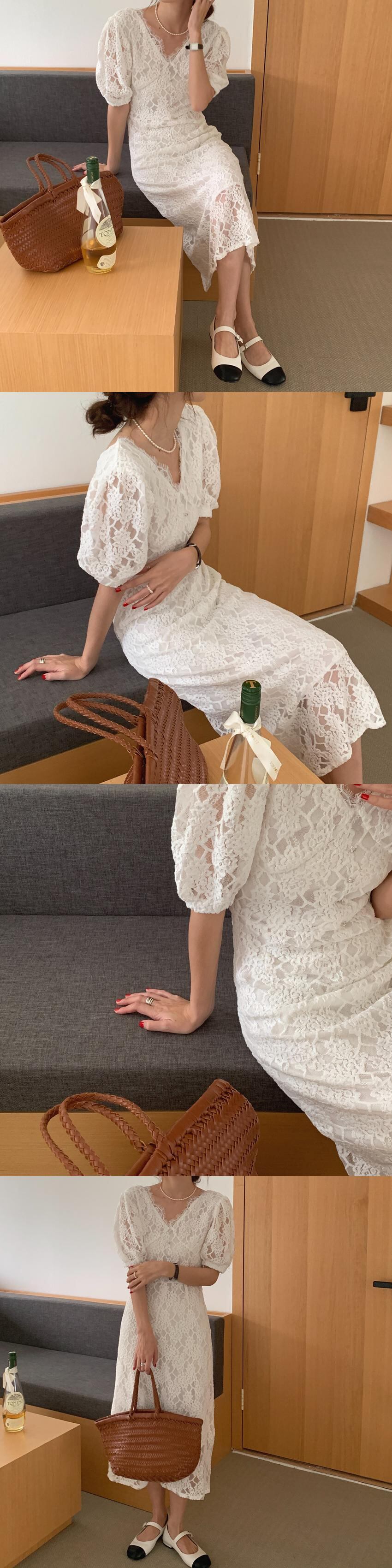 サマーレーススタイルVネックドレス ロングスカート 大人ガーリー スウィート キュート カジュアル 夏物 韓国婦人4652773694