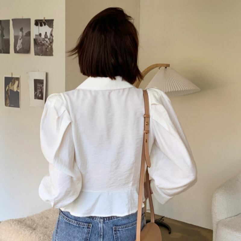 オータムカラーボタンルーズラッフルショートシャツ レディース 秋物 韓国婦人47278088418