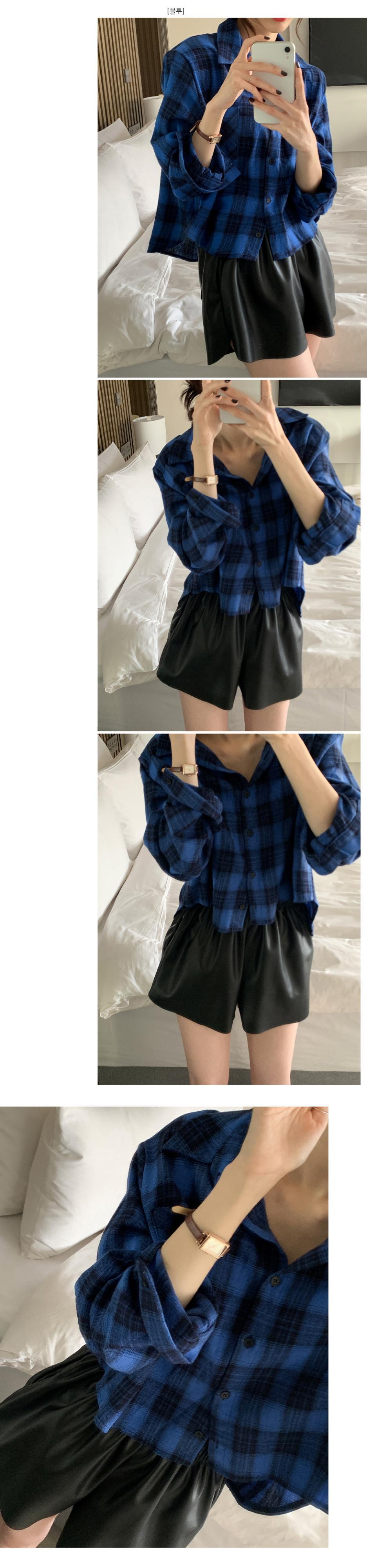 オータムスタンダードルーズスタイルショート格子柄シャツ トップス レディース ロング レトロ 秋物 韓国婦人94504055809