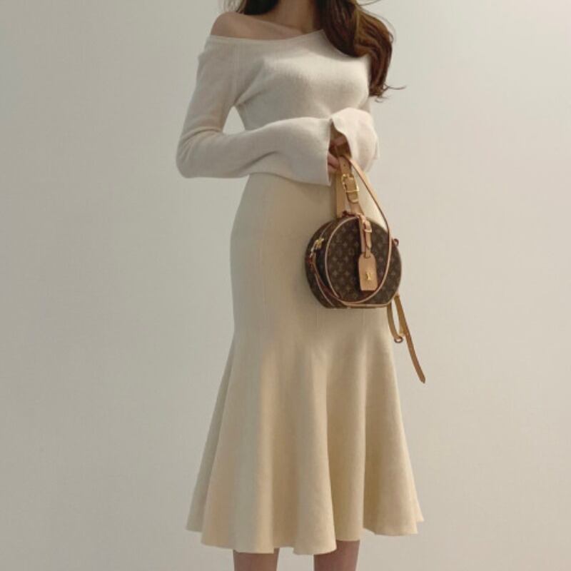 オータムスリーブセーター スカート レディース レッド 大人ガーリー スウィート キュート カジュアル 秋物 韓国婦人94986934257