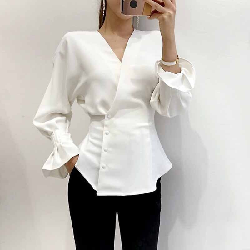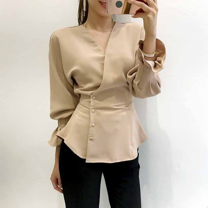 オータムVネックウェストスリーブシャツ レッド 秋物 韓国婦人48382647755