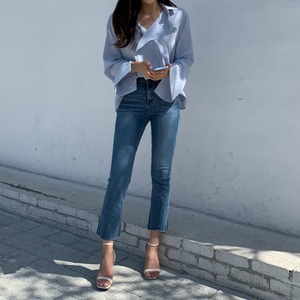 スプリングサマーホワイトシャツ 薄手スタイルブラウス ロング 春物 夏物 韓国婦人5677081178