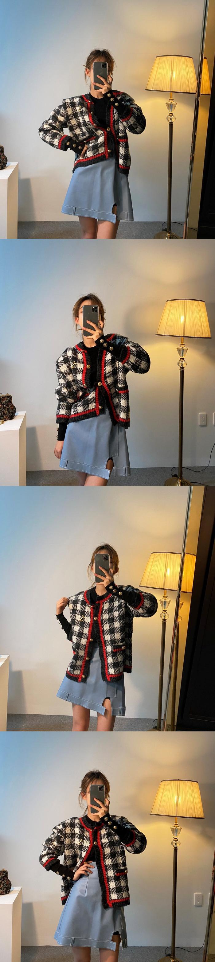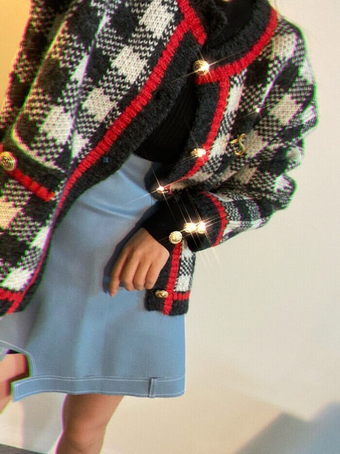 オータムウィンタースタンダードスタイルカラーショート格子柄ニットカーディガンセーター レディース レトロ 秋物 冬物 韓国婦人14499751470