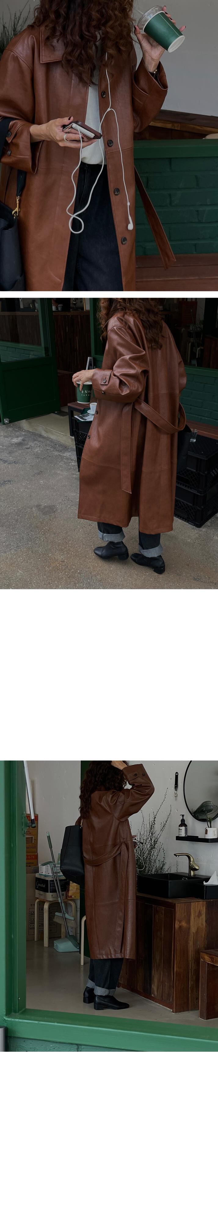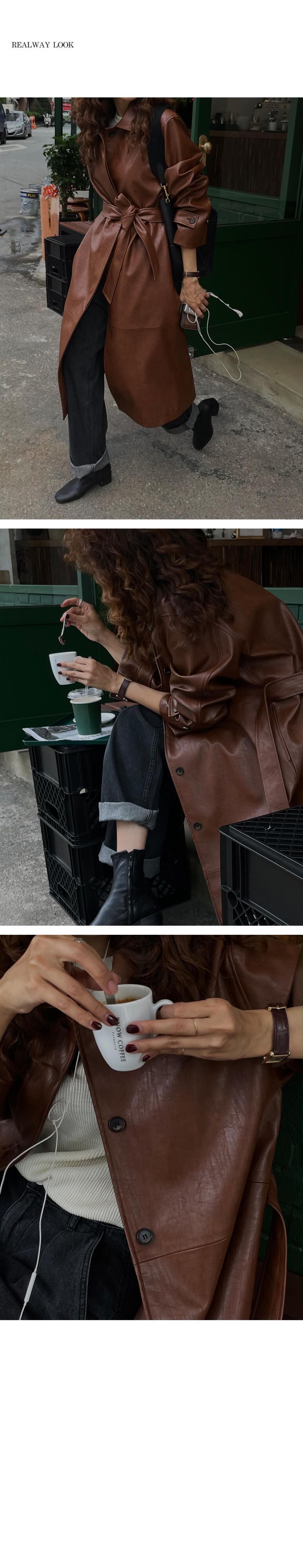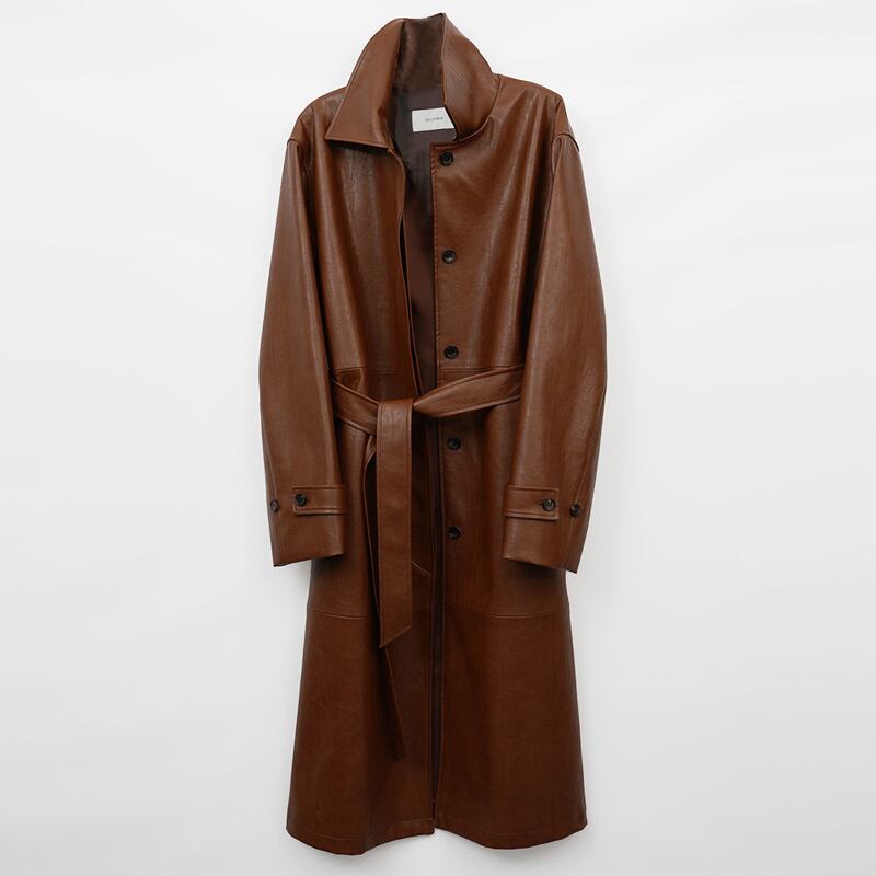 オータムウィンタースタンダードウェストベルト ロングレザーコート ジャケット レディース レトロ 秋物 冬物 ハーネス 韓国婦人9525530877