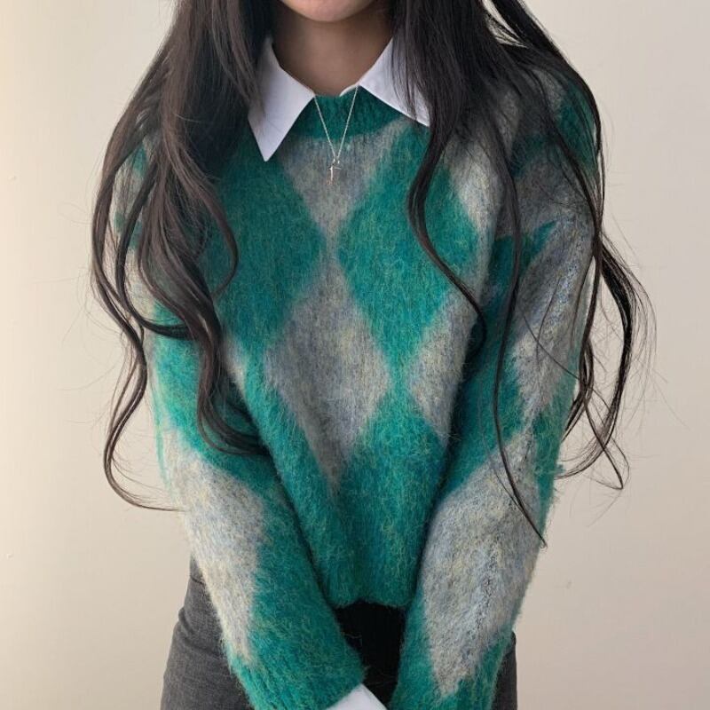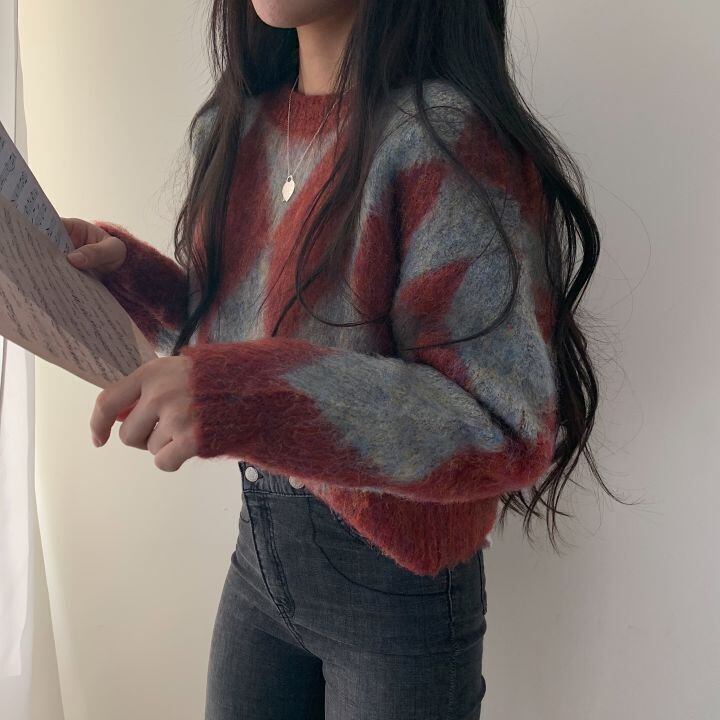 オータムウィンタースタンダードルーズラウンドネックカラーセーター レディース レトロ 秋物 冬物 Oネック 韓国婦人99041966454