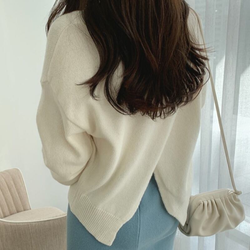 オータムウィンタースタンダードバックルーズプルオーバー ニットセーター レディース レトロ 秋物 冬物 Oネック 韓国婦人97445014238