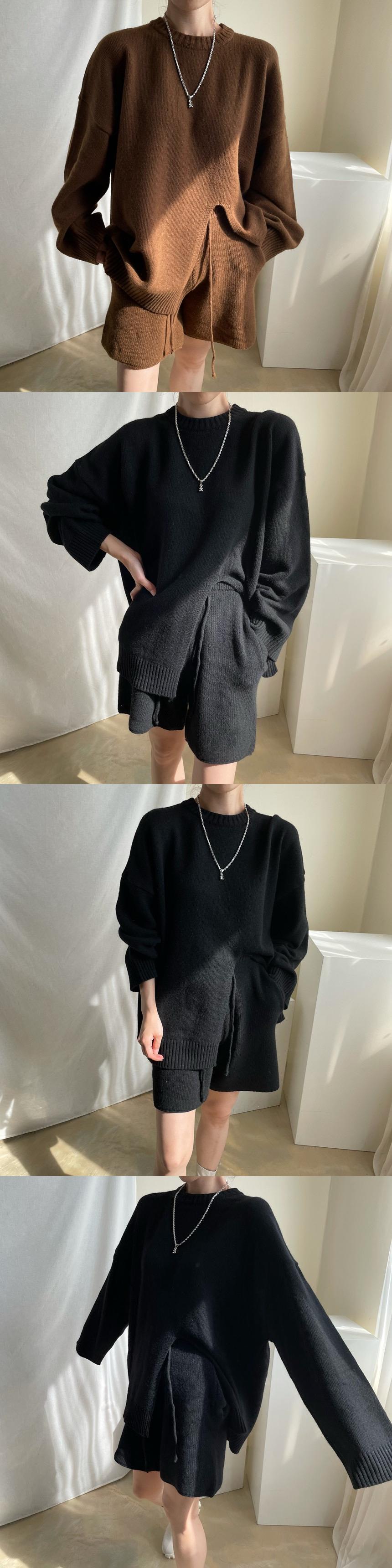 ミニマリストルーズセーター ギャザーショーツ ニットレディース ロング ブルマー 韓国婦人18367181636