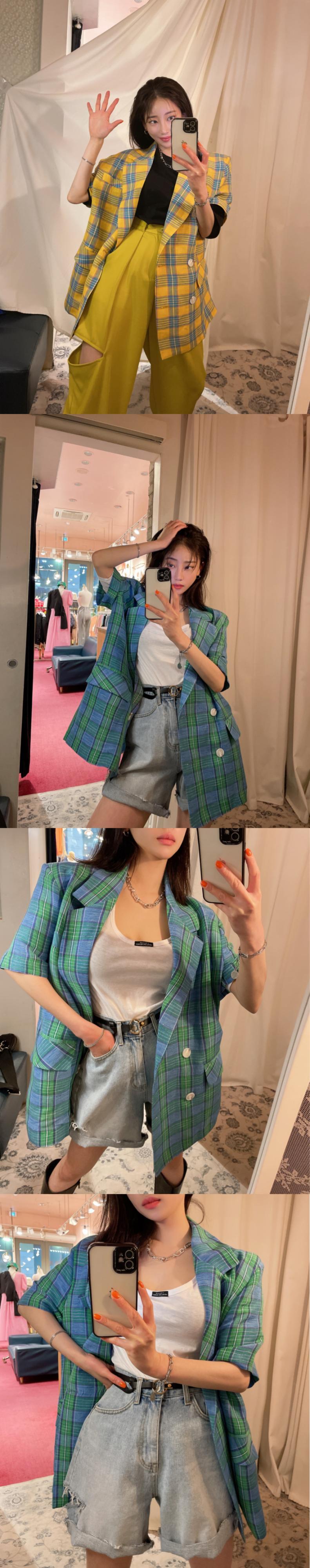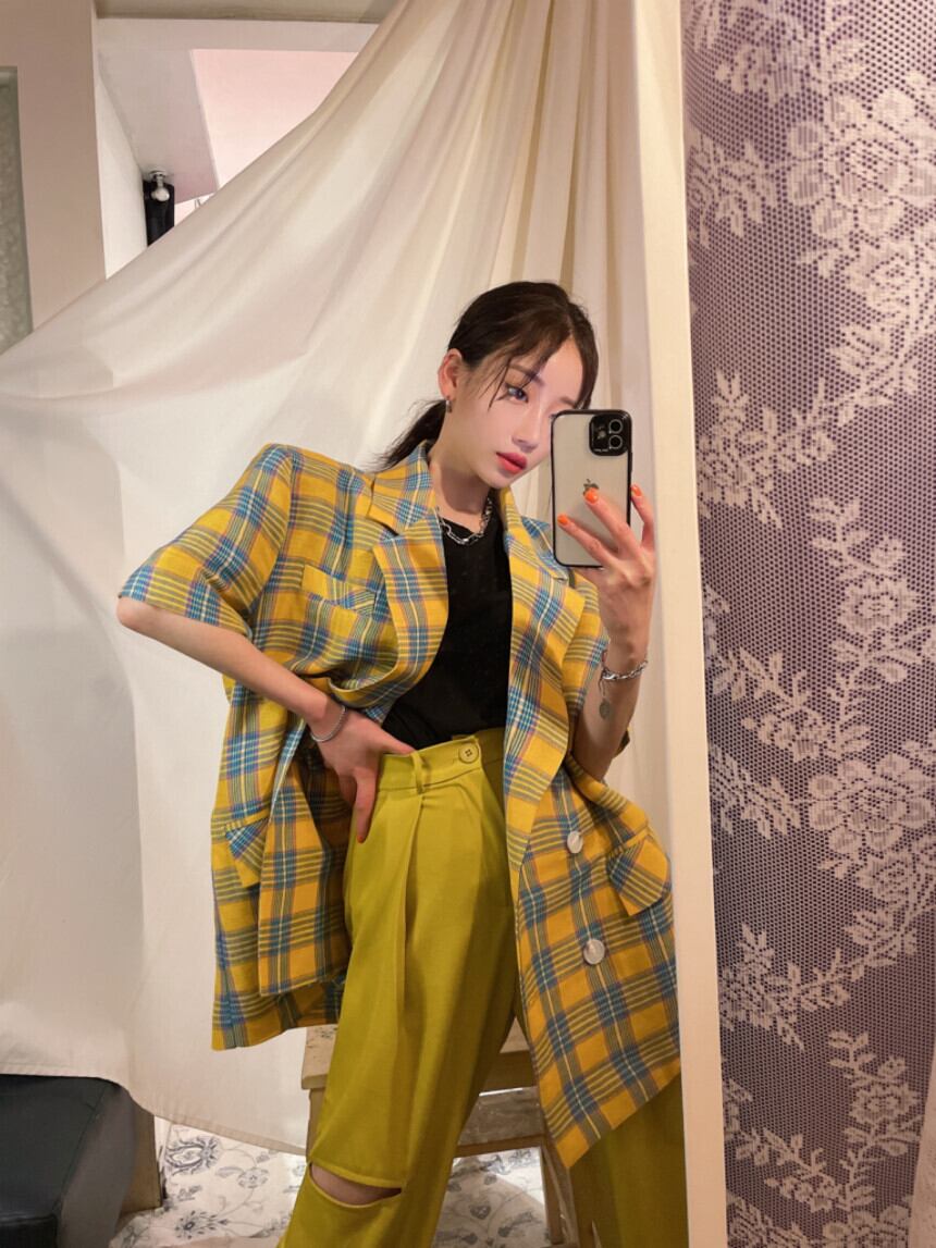 格子柄ジャケット レディースルーズスタンダードカジュアル薄手サマー レトロ 夏物 韓国婦人8308185923