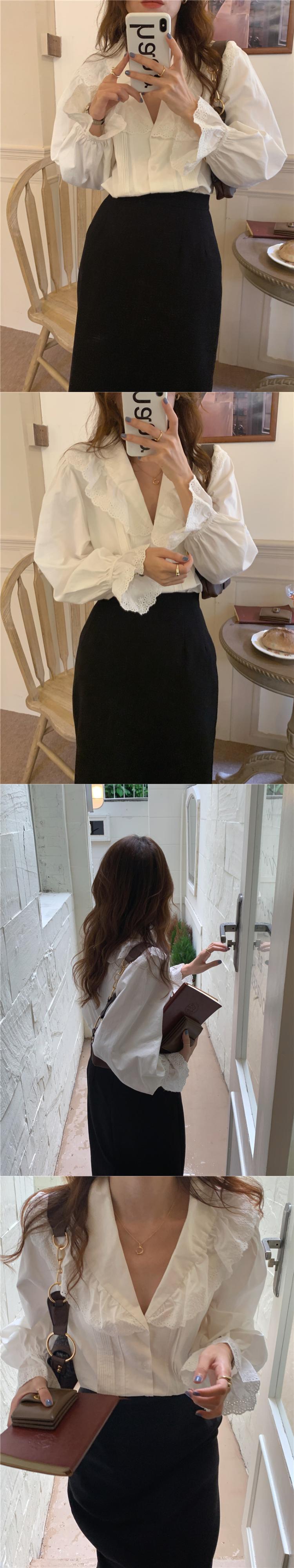 オータムレーススリーブプリーツホワイトシャツ ブラウス レディース 秋物 韓国婦人10860048791