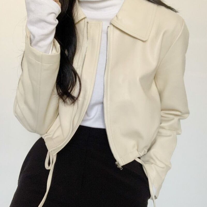 オータムスタンダードカジュアルルーズショートレザージャケット レディース ロング レトロ 秋物 韓国婦人63835100881